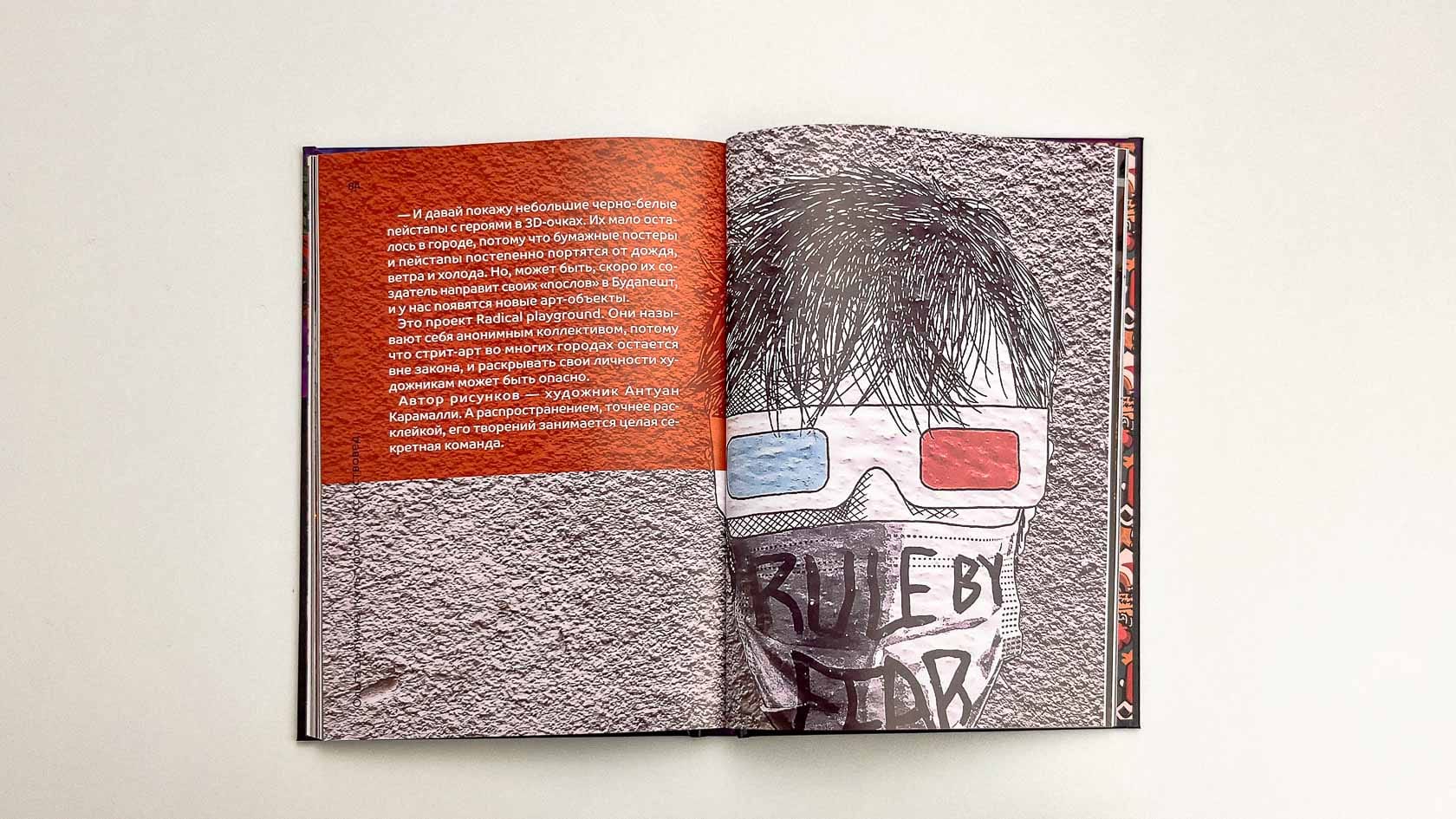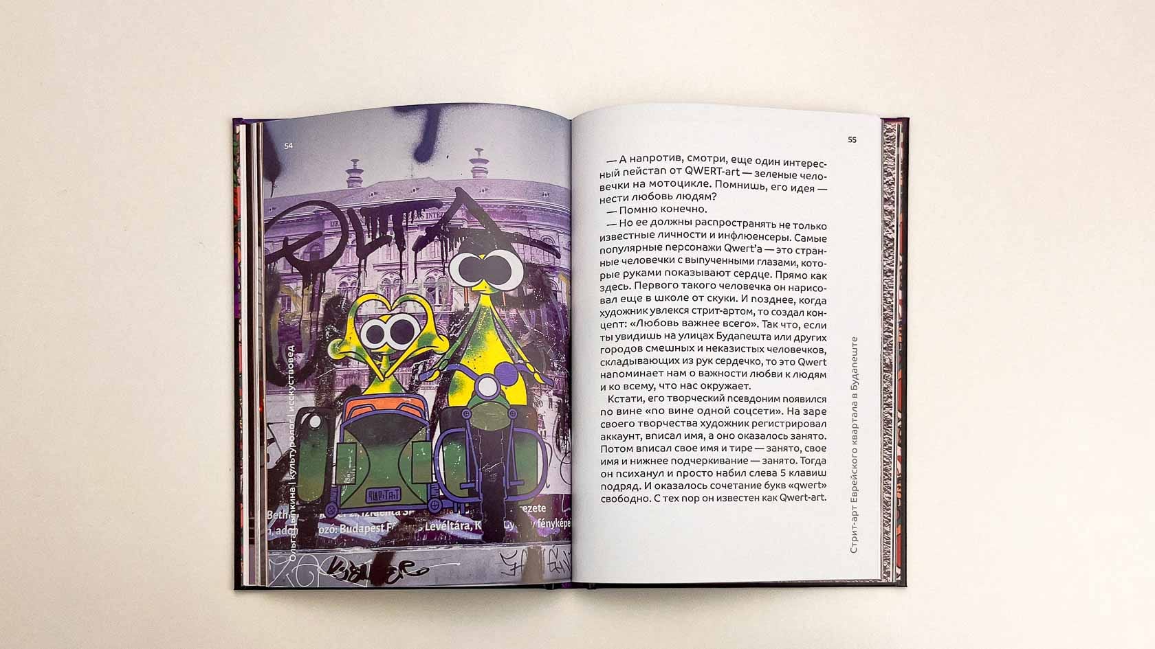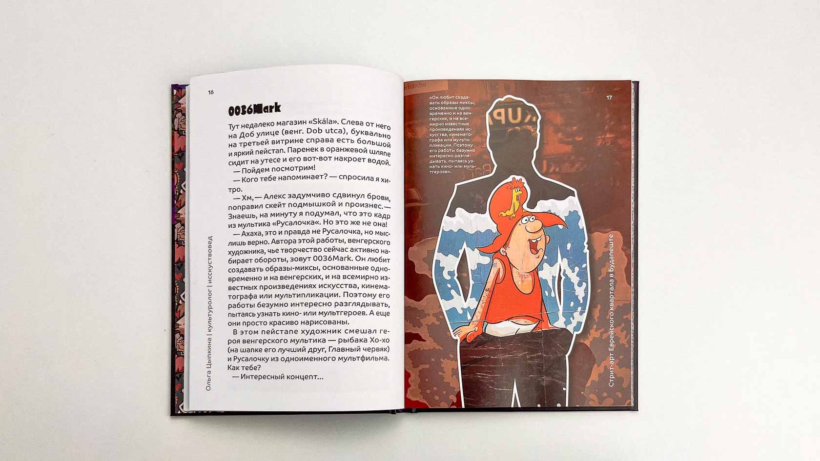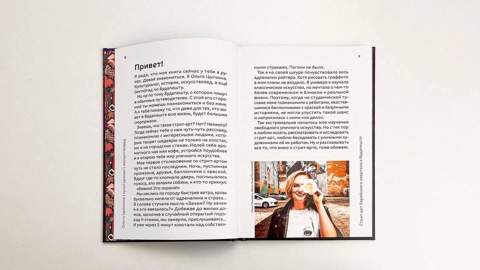 Получилась объёмная визуальная книга о стрит-арте Будапешта. Она выглядит уверенно: плотная бумага, креативная верстка, продуманная подача. Автор получила продукт, который можно показывать друзьям, коллегам, использовать как портфолио, продавать — и главное: книгу, которая стала её первой реализованной издательской идеей.