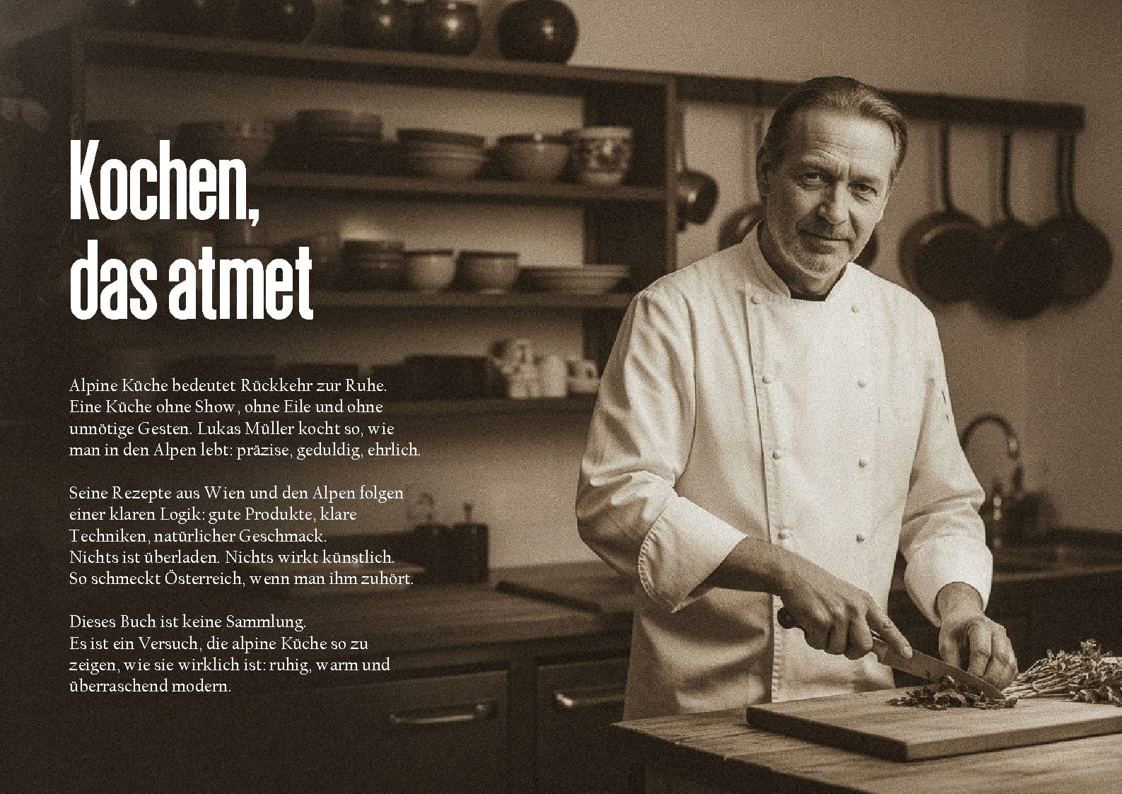 Австрийский шеф Лукас Мюллер — человек, который умеет готовить так, будто в мире нет спешки. Работает в Вене и окрестностях, проводит мастер-классы, учит людей жарить шницель по рецепту бабушки, картофельный салат и другие “штрудели”.